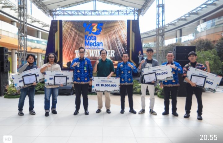 Pengumuman pemenang utama kompetisi desain logo HUT ke-435 Kota Medan yang digelar di Rivapark Delipark Mall ini dihadiri langsung Wali Kota Medan Rico Tri Putra Bayu Waas bersama Wakil Wali Kota Medan H. Zakiyuddin Harahap, Selasa (17/6/25).