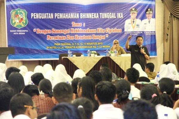 Medan, POL | Sebagai upaya untuk memberikan pemahaman kepada generasi muda bahwasannya Bhineka Tunggal Ika sebagai landasan berfikir multikultur dan dapat saling menghargai segala perbedaan, Pemko Medan melalui Badan Kesatuan dan Politik (Kesbangpol) Kota Medan menggelar Seminar Penguatan Pemahaman Bhineka Tunggal Ika di Kalangan Generasi Muda se-Kota Medan 2019 di LJ Hotel Jalan Perintis Kemerdekaan, Selasa (6/8/2019).