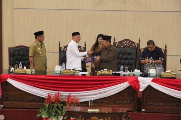 Selanjutnya, di tempat yang sama Wali Kota Medan Drs H T Dzulmi Eldin S MSi MH bersama Ketua DPRD Medan Henry Jhon Hutagalung melakukan penandatanganan/pengambilan keputusan bersama terkait Ranperda Kota Medan tentang Perubahan Anggaran Pendapat Belanja Daerah (P-APBD) Kota Medan Tahun Anggaran 2019.