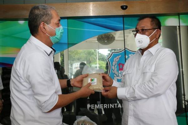 Medan, POL | Pemko Medan menerima bantuan gula pasir sebanyak 2 ton dari PT Perkebunan Nusantara (PTPN) II di lobbi Balai Kota Medan, Kamis (14/5/2020). Bantuan itu nantinya disalurkan kepada warga yang terdampak program social dan physical distancing dalam penanggulan penyebaran Corona Virus Disease 2019 (Covid-19).