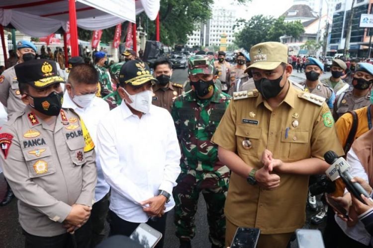 Hal ini disampaikan Wali Kota Medan, Bobby Nasution, usai memimpin Apel Operasi Kontijensi Aman Nusa II Toba Penanganan Covid-19 dalam Rangka Pelaksanaan PPKM Darurat di Kota Medan, Senin (12/7/2021) di Jalan Bukit Barisan Medan. Apel diikuti personil TNI/Polri dan Pemko Medan ini turut dihadiri Gubsu Edy Rahmayadi, Kapoldasu Irjen. Pol. RZ Panca Putra Simanjuntak, unsur Forkopimda Sumut dan Medan, pimpinan OPD serta Camat di lingkungan Pemko Medan.