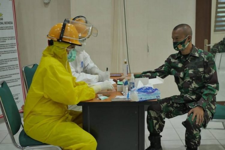Medan, POL | Pemko Medan melalui Dinas Kesehatan Kota Medan bekerjasama dengan Kodim 0201/BS menggelar rapid test di Aula Makodim 0201/BS Jalan Pengadilan Medan, Senin (27/7/2020). Rapid test ini diikuti sebanyak 200 orang prajurit, termasuk Dandim 0201/BS  Letkol Inf Agus Setiandar, sebagai upaya massif mengantisipasi penyebaran Corona Virus Disease 2019 (Covid-19) di lingkungan Kodim 0201/BS.