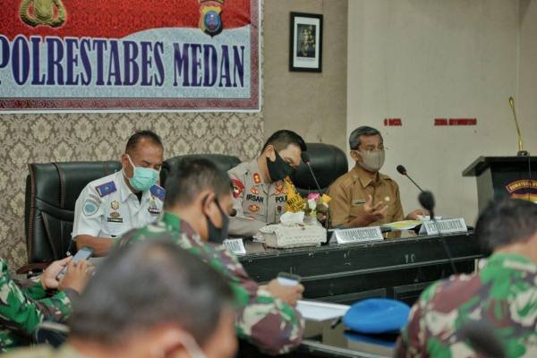 Pelaksana tugas (Plt) Wali Kota Medan Ir H Akhyar Nasution MSi diwakili Sekda Kota Medan Ir Wiriya Alrahman MM hadir dalam rapat yang dipimpin Kapolrestabes Medan Kombes Pol Jhonny Edizzon Isir diwakili Wakapolrestabes Medan AKBP Irsan Sinuhaji tersebut. Diharapkan pengamanan yang nanti dilakukan dapat meminimalisir keramaian warga terlebih di tengah kondisi pandemi Corona Virus Disease 2019 (Covid-19) yang melanda.