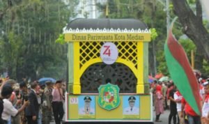 Medan , POL |Pemko Medan ikut pawai pembangunan yang diselenggarakan Pemerintah Provinsi Sumatera Utara guna memeriahkan peringatan HUT ke-74 Kemerdekaan Republik Indonesia tahun 2019. Selain pawai pembangunan dengan menurunkan belasan mobil hias, Pemko Medan juga menampilkan Tarian Ahoii Nusantara yang kini menjadi tarian ikon Kota Medan.