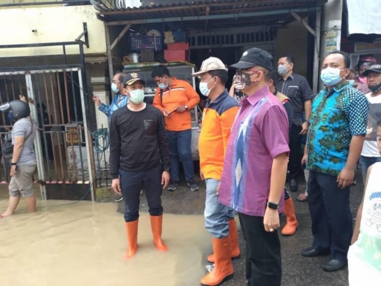 Medan, POL | Penjabat sementara (Pjs) Wali Kota Medan Ir Arief Sudarto Trinugroho MT diwakili Pelaksana Tugas (Plt) Asisten Pemerintahan dan Sosial (Aspemsos) Setdako Medan Renward Parapat didampingi Kabag Tata Pemerintahan (Tapem) Ridho Nasution dan Kabag Sosial Pendidikan (Sospen) Setda Kota Medan Khoiruddin Rangkuti meninjau kondisi salah satu titik banjir di Kota Medan tepatnya di sekitar Jalan Brigjen Katamso Kelurahan Sei Mati Kecamatan Medan Maimun, Medan, Jum’at (4/12/2020).