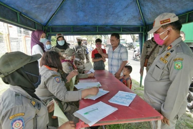 Medan, POL | Tim gabungan yang terdiri dari Satuan Polisi Pamong Praja (Satpol PP) Kota Medan bersama Satpol PP Provinsi Sumut, Dinas Perhubungan (Dishub) Kota Medan, TNI/Polri serta unsur Kecamatan Medan Sunggal, melakukan razia masker dalam mendisiplinkan masyarakat untuk menerapkan protokol kesehatan di tengah pandemi Corona Virus Disease 2019 (Covid 19) guna memutus mata rantai penyebaran Covid 19 di Kota Medan.