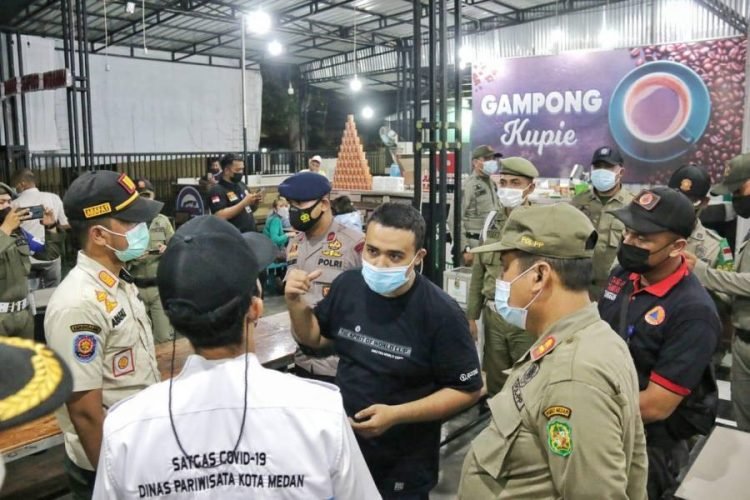 Medan, POL | Petugas gabungan Pemko Medan kembali menertibkan sejumlah cafe yang melanggar PPKM berskala mikro. Penertiban ini dilakukan pada saat petugas gabungan dari Pemko Medan dibantu aparatur TNI dan Polri menggelar patroli pengawasan PPKM Mikro di Kota Medan seiring dengan di perpanjangnya pemberlakuan PPKM Mikro di Kota Medan, Rabu (16/6/2021).