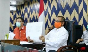 Medan, POL | Pelaksana tugas (Plt) Wali Kota Medan Ir H Akhyar Nasution MSi menerima Laporan Hasil Pemeriksaan (LHP) atas Laporan Keuangan Pemerintah Daerah (LKPD) Tahun Anggaran 2019, Jumat (24/4). Prosesi penyerahan LHP dilakukan melalui sambungan Video Conference (Vidcon) di Command Center Balai Kota Medan.