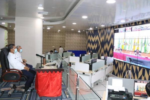 Medan, POL | Pelaksana tugas (Plt) Wali Kota Medan Ir H Akhyar Nasution MSi diwakili Sekda Kota Medan Ir H Wiriya Alrahman MM  mengikuti vido conference (vidcon) dengan Menteri Dalam Negeri (Mendagri) Republik Indonesia Tito Karnavian di Command Centre, Balai Kota Medan, Rabu (7/4/2020).  Dalam Vidcom yang juga diikuti 519 kepala daerah di seluruh Indonesia, Mendagri minta kepada seluruh daerah untuk segera melakukan percepatan penggunaan alokasi anggaran kegiatan tertentu (refocusing) dan evaluasi anggaran , guna percepatan penanganan Corona Virus Disease 2019  (Covid-19) di wilayahnya masing-masing.