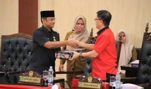 Medan, POL | Pemko Medan menerima surat putusan salinan hasil pokok-pokok pikiran anggota DPRD Medan dalam Rapat Paripurna Penyampaian Pokok-Pokok Pikiran Anggota DPRD di Gedung DPRD Medan, Senin (9/3). Tujuannya sebagai bahan rujukan dan masukan bagi Pemko Medan dalam menjalankan rencana kerja pemerintah daerah (RKPD) agar memberikan hasil yang optimal.