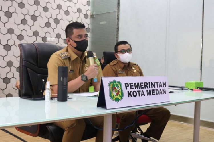 Medan, POL | Pelaku Usaha Mikro Kecil Menengah (UMKM) dari seluruh kecamatan se-Kota Medan mengikuti Sosialisasi Tata Cara Pencantuman Etalase Kategori dan Atribut Produk Makanan dan Minuman ke dalam Katalog Elektronik Lokal Medan, Selasa (29/6/2021), yang digelar Pemko Medan melalui Bagian Pengadaan Barang dan Jasa Setda Kota Medan. Kegiatan yang berlangsung secara virtual ini dibuka oleh Wali Kota Medan, Bobby Nasution dari Ruang Command Center Kantor Wali Kota.