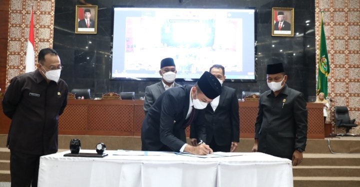 Nota Kesepakatan Perubahan Kebijakan Umum APBD 2021 ditandatangani oleh Wakil Gubernur (Wagub) Sumut Musa Rajekshah dan Wakil Ketua DPRD Sumut Rahmansyah Sibarani, dalam Rapat Paripurna di Gedung DPRD Sumut Jalan Imam Bonjol, Medan, Rabu (1/9/2021).
