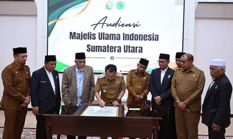 Medan, POL | Pemerintah Provinsi (Pemprov) Sumatera Utara (Sumut) bersama Majelis Ulama Indonesia (MUI) Provinsi Sumut menandatangani piagam kesepahaman tentang terwujudnya pembangunan masyarakat yang maju dan berakhlak. Piagam ini merupakan hasil Musyawarah Kerja MUI Sumut yang diselenggarakan pada 21-23 Desember 2024.