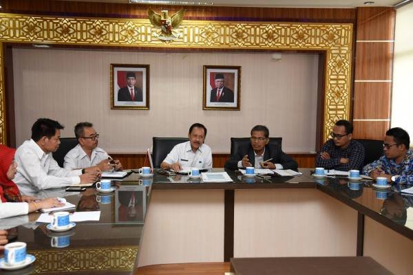 Medan, POL | Pemerintah Provinsi (Pemprov) Sumatera Utara (Sumut) berkomitmen meningkatkan pelayanan publik. Hal tersebut disampaikan Asisten Perekonomian Pembangunan dan Kesejahetraan Sekretariat Daerah Provinsi Sumut Arief Sudarto Trinugroho saat menerima kunjungan Ombudsman RI Perwakilan Sumut di ruang rapat Kumala Pontas Kantor Gubernur Jalan Diponegoro Medan, Rabu (5/2/2020).