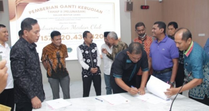 Hal tersebut ditandai dengan penandatanganan berita acara pemberian ganti kerugian dalam bentuk uang tahap II (pelunasan) dengan Nomor 38 / BA – 12.71.AT.01.500/1/2023, oleh Kepala Biro Umum Setdaprov Sumut Dedi Jaminsyah Putra, Kepala Kantor Pertanahan Kota Medan Yuliadi, selaku Ketua Pelaksana Pengadaan Tanah dan Ketua Pengurus Perkumpulan Medan Club Eswin S Soekardja, di Ruang Rapat I Lantai 2 Kantor Gubenur Sumut, Jalan Diponegoro Nomor 30 Medan, Jumat (13/1/2023).