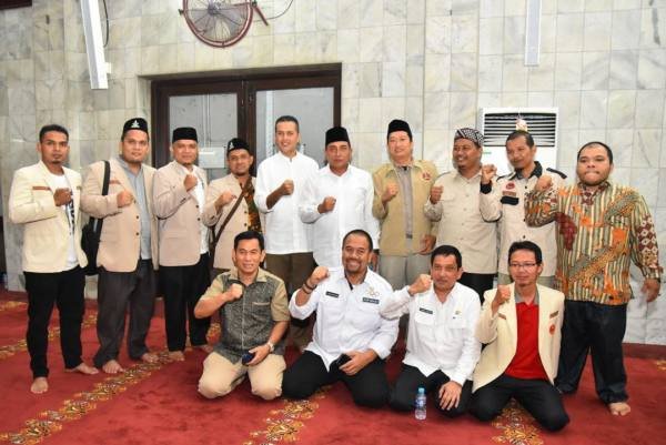 Medan, POL | Gubernur Sumatera Utara (Sumut) Edy Rahmayadi bersama Wakil Gubernur (Wagub) Sumut Musa Rajekshah menerima kunjungan silaturahmi pengurus Pemuda Muhammadiyah Sumut. Pertemuan yang berlangsung santai dan informal tersebut digelar di Masjid Agung, Jalan Diponegoro, Medan, Rabu (19/6/2019).