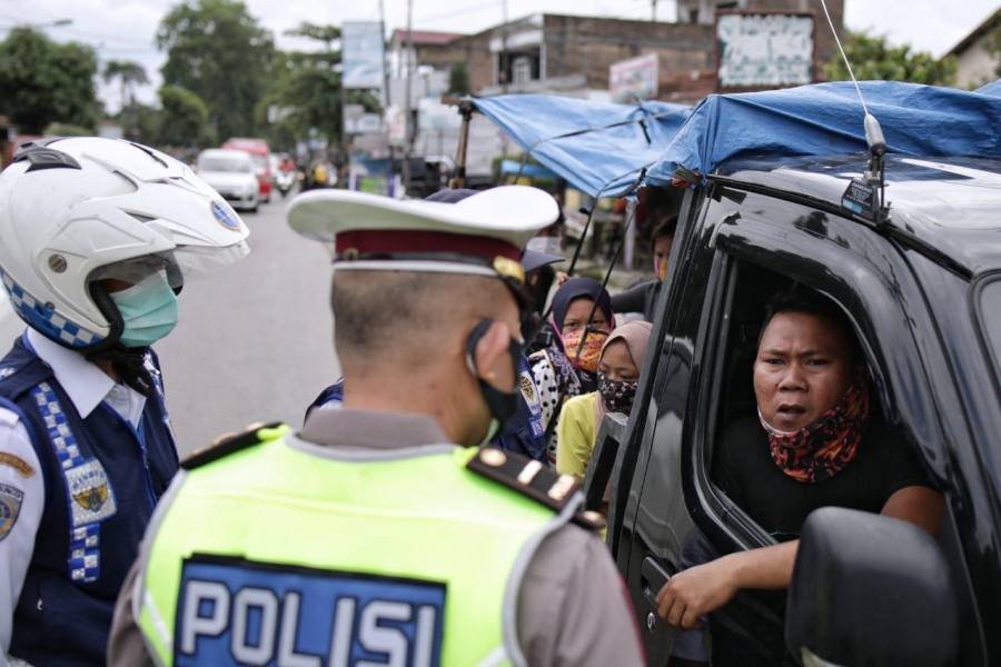 Medan, POL| Penyekatan kendaraan bermotor di pos cek point di Jalan Jamin Ginting, Kecamatan Medan Tuntungan, Jumat (14/5/2021) terus berlanjut. Petugas Gabungan memeriksa setiap pengendara masuk ke Kota Medan dan jalani Test Swab Antigen guna mencegah penyebaran Virus Covid-19.