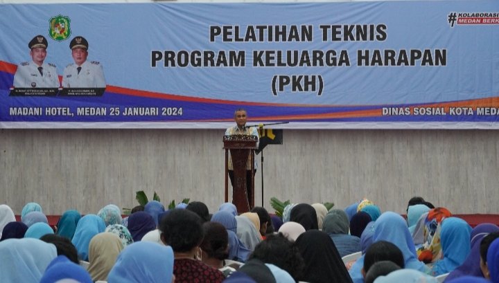 Medan, POL | Sebanyak 500 peserta Keluarga Penerima Manfaat (KPM) Program Keluarga Harapan (PKH) yang berasal dari 4 kecamatan yakni Medan Amplas, Johor, Maimun dan Denai mengikuti Pelatihan Teknis PKH di Hotel Madani Medan, Kamis (25/1/2024). Melalui pelatihan yang diselenggarakan Dinas Sosial Kota Medan ini, diharapkan dapat meningkatkan aksesibilitas para KPM terhadap layanan kesehatan, pendidikan dan kesejahteraan sosial.