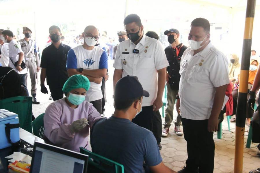 Medan, POL | Wali Kota Medan, Bobby Nasution terus berupaya mempercepat vaksinasi covid-19 di Kota Medan, hal ini dilakukan guna mempercepat terbentuknya herd immunity (kekebalan kelompok) di masyarakat sebagai kunci utama mengendalikan penyebaran covid-19 di Kota Medan.