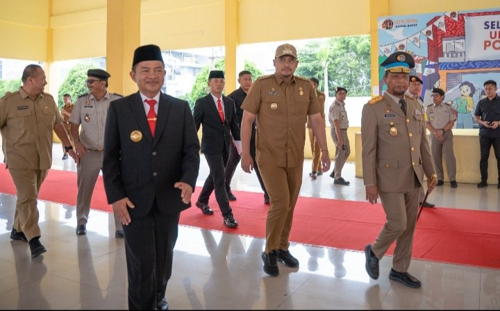Medan, POL | Wali Kota Medan Bobby Nasution menghadiri Upacara Peringatan Hari Agraria dan Tata Ruang Nasional (Hantaru) ke 63 di Lapangan Astaka Pancing, Jalan Williem Iskandar, Senin (25/9/2023). Bertindak sebagai Inspektur Upacara (Irup) Pj Gubernur Sumut Hassanudin.