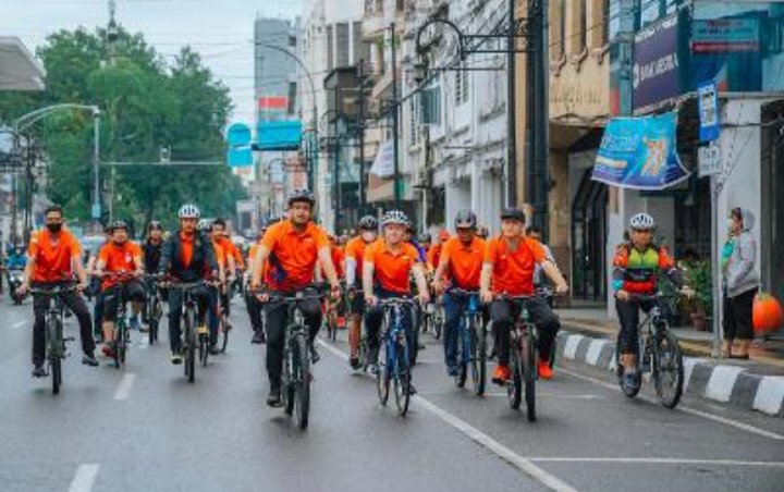 Medan, POL | Guna mempererat silaturahmi sekaligus memperingati Hari Sepeda Dunia Tahun 2022, Wali Kota Medan Bobby Nasution bersepeda bersama unsur  Forkopimda dan sejumlah pimpinan OPD di lingkungan Pemko Medan, Sabtu (4/6/2022) pagi. Rumah Dinas Wali Kota di Jalan Sudirman Medan menjadi titik start dimulainya kegiatan menggowes tersebut.