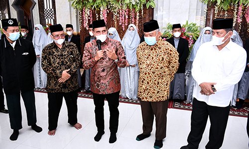 Selain bertemu dengan 11 pasangan peserta Menikah Mubarak Hidyatullah, Gubernur Edy Rahmayadi juga meresmikan Masjid Baitul Akbar Ponpes Hidayatullah Tanjungmorawa. Disaksikan Wakil Bupati Deliserdang M Ali Yusuf Siregar, Ketua Ponpes Hidayatullah Tanjungmorawa M Ali Ibrahim Akbar, Ketua DPW Hidayatullah Sumut Subur Pramudya serta unsur Forkopimda. (POL/isvan)