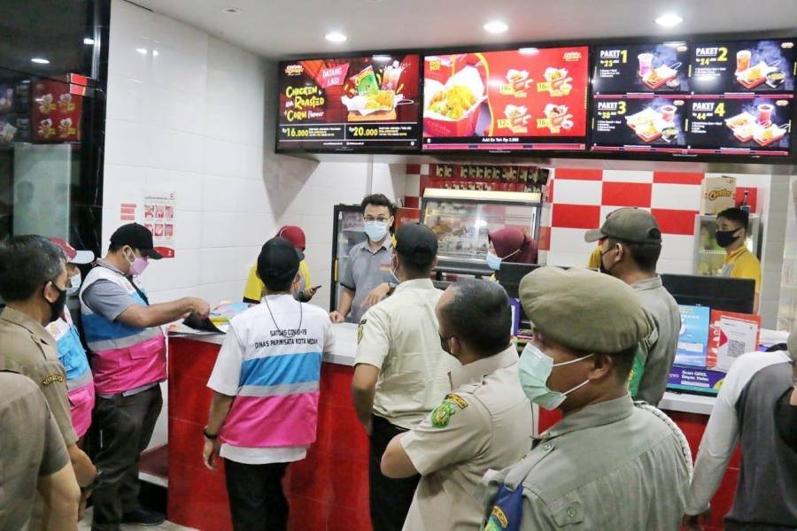 Pada saat dilakukan patroli, petugas mendapati pengunjung yang masih menikmati makan ditempat padahal pada saat itu waktu sudah menunjukkan pukul 22.30 wib, sedangkan berdasarkan Surat Edaran (SE) Wali Kota Medan No 440/5352 tentang Pemberlakuan Pembatasan Kegiatan Masyarakat Berbasis Mikro dan Mengoptimalkan Posko Penanganan Covid-19 di Tingkat Kelurahan Untuk Pengendalian Penyebaran Covid-19 di Kota Medan, restoran dan cafe hanya diperbolehkan melakukan layanan makan dan minum ditempat sampai batas pukul 20.00 wib.