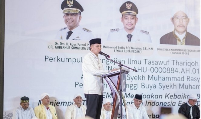 Medan, POL | Penjabat (Pj) Gubernur Sumatera Utara (Sumut) Agus Fatoni memberikan atensi terkait pelaksanaan Pekan Olahraga Nasional (PON) dan Pemilihan Kepala Daerah (Pilkada) Serentak. Hal itu disampaikannya saat menghadiri Zikir Akbar di Gedung Serbaguna Pemprov Sumut, Medan, Sumut, Sabtu (13/7/2024) malam.
