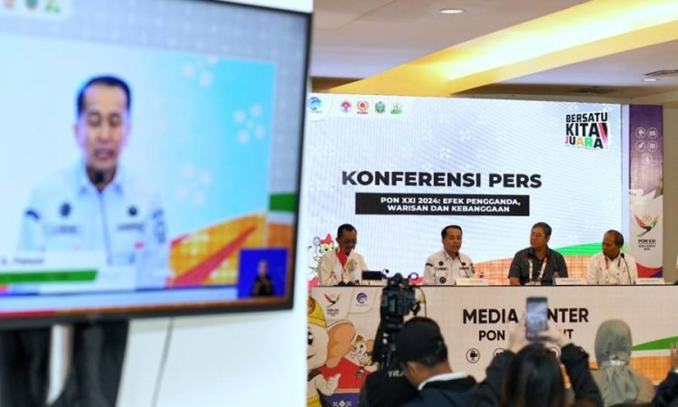 Hadir pada konferensi pers kali ini Direktur IKPMK Kementrian Kominfo Bambang Dwi Anggoro, Kadis Kominfo Sumuy Ilyas S Sitorus dan Ketua Harian OB PON Wilayah Sumut Baharuddin Siagian. Hadir juga jajaran PB PON Wilayah Sumut serta OPD terkait Pemprov Sumut. (isvan)