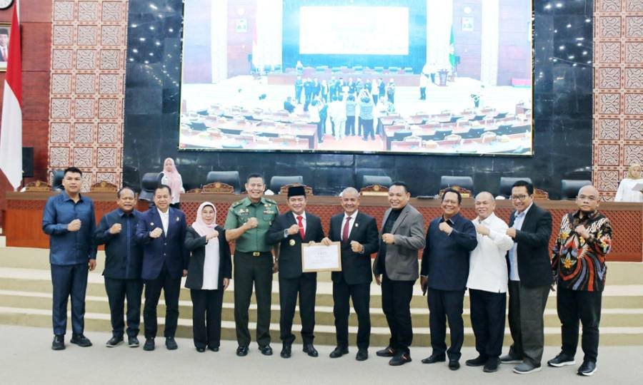 Medan, POL | Penjabat (Pj) Gubernur Sumatera Utara (Sumut) Hassanudin menerima rekomendasi Dewan Perwakilan Rakyat Daerah (DPRD) terhadap Laporan Keterangan Pertanggungjawaban (LKPJ) Gubernur Tahun Anggaran 2023. Pada kesempatan tersebut, Hassanudin menyampaikan akan menindaklanjuti rekomendasi tersebut.