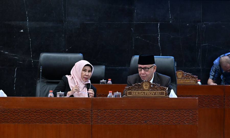 Medan, POL | Penjabat (Pj) Sekretaris Daerah Provinsi (Sekdaprov) Sumatera Utara (Sumut) Effendy Pohan menghadiri rapat paripurna dewan tentang Penetapan Calon Ketua DPRD Sumut masa jabatan 2024-2029 di Gedung Paripurna, Jumat (3/1/2025). Berdasarkan keputusan partai, nama Erni Ariyanti ditetapkan sebagai calon pimpinan dewan dari Partai Golkar.
