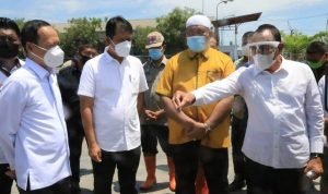 Medan, POL | Penjabat Sementara (Pjs) Wali Kota Medan Ir Arief Sudarto Trinugroho MT mendampingi Gubsu Edy Rahmayadi meninjau lokasi yang terkena banjir rob di Jalan Bagan Deli, Kelurahan Bagan Deli, Kecamatan Medan Belawan, Selasa (20/10) siang. Selain menggenangi rumah, aktifitas warga pun lumpuh total karena ketinggian banjir rob sempat mencapai sekitar 1 meter.