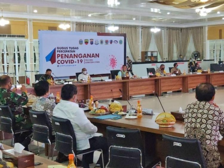 Rapat diawali dengan pemaparan kondisi pandemi Covid-19 dengan pemaparan tentang perkembangan kasus Covid-19 yang tengah terjadi di Sumut saat ini. Berdasarkan data yang yang diungkapkan Tim BNPB sampai, Rabu (24/9), jumlah kasus aktif sebanyak 3.333 (34,2%), jumlah kasus positif 9.749, jumlah kasus sembuh 6.006 (61,6%) serta jumlah kasus meninggal sebanyak 410 (4,2%). Sedangkan secara nasional, kasus aktif 22,90%, kasus sembuh 73,22% dan kasus meninggal 3,05%.