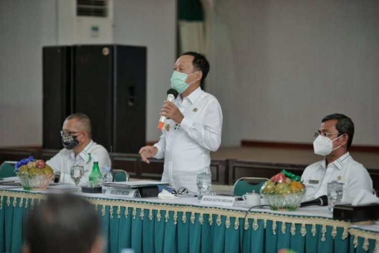 Medan, POL | Percepatan penanganan Corona Virus Diseases 2019 (Covid 19) menjadi salah satu agenda Pjs Wali Kota Medan Ir Arief Sudarto Trinugroho MT selama melaksanakan tugasnya di Pemko Medan. Keseriusan Pjs Wali Kota Medan ini dibuktikan melalui Rapat Evaluasi Percepatan Penanganan Covid 19 di Posko Gugus Tugas Gedung PKK Jalan Rotan Proyek Medan, Rabu (30/9/2020) siang.