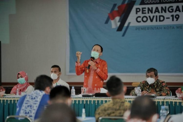 Medan, POL | Setelah melakukan evaluasi kinerja Organisasi Perangkat Daerah (OPD) di lingkungan Pemko Medan terkait percepatan penanggulangan Corona Virus Disease 2019 (Covid 19) di Kota Medan, Pjs Wali Kota Medan Ir Arief Sudarto Trinugroho MT, hari ini, Kamis (1/10/2020) melakukan evaluasi yang sama kepada camat dan kepala puskesmas se Kota Medan di Posko Gugus Tugas Percepatan Penanganan Covid-19 Gedung PKK Jalan Proyek Rotan, Medan.