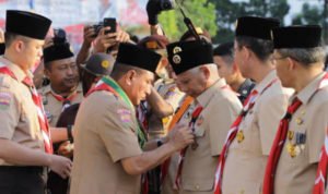 Asahan, POL | Plt Bupati Asahan,H Surya BSc, dalam kapasitas sebagai Mabicab Gerakan Pramuka Kabupaten Asahan menerima piagam penghargaan berupa Lencana Pancawarsa III dari Gubernur Sumatera Utara, Edi Rahmayadi, selaku Mabida Gerakan Pramuka Provinsi Sumatera Utara, Selasa (27/08/2019). Penyerahan penghargaan dilakukan pada apel besar HUT Pramuka ke 58 yang dilaksanakan di Medan Sumatera Utara.