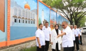 Medan, POL | Plt Wali Kota Medan Ir H Akhyar Nasution MSi mengapresiasi mural (lukisan di dinding/tembok) di Jalan Polonia, Kelurahan Suka Damai Kecamatan Medan Polonia saat meninjau kawasan tersebut, Rabu (18/12/2019).