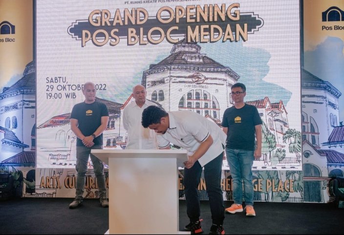“Pos Bloc Medan, Lapangan Merdeka dan kawasan Kota Lama Kesawan nantinya akan menjadi kawasan ekonomi sehingga dapat membangkitkan perekonomian Kota Medan, terutama UMKM,” kata Bobby Nasution saat menghadiri Grand Opening Pos Bloc Medan di Gedung Kantor Pos Medan, Sabtu (29/10/2022).