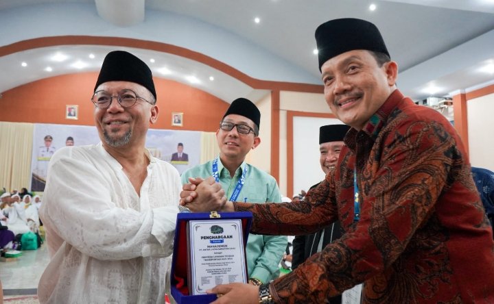 Medan, POL | Panitia Penyelenggara Ibadah Haji (PPIH) Debarkasi Medan menyerahkan Plakat Penghargaan kepada Manajemen PT. Antar Lintas Sumatera Utara sebagai penyedia layanan terbaik trasportasi haji 2024 dari Forum Media Peliputan Haji Sumatera Utara, Minggu (21/7/2024) dinihari diterima Chandra Lubis, pemilik bus ALS.