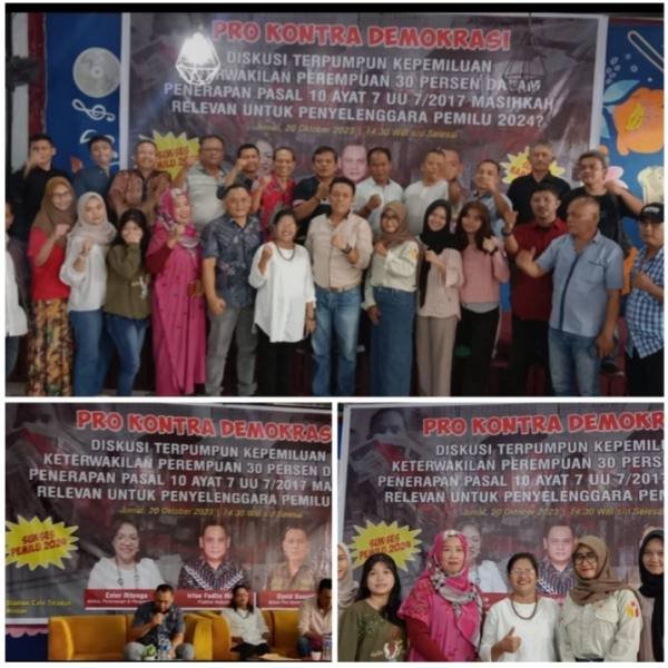 Medan, POL | Para penyelenggara pemilu belum memenuhi amanat UU No. 7/2017, karena tidak mengakomodir keterwakilan perempuan. Hal itu mencuat pada diskusi terpumpun keterwakilan perempuan 30 persen dalam penerapan pasal 10 ayat 7 UU No. 7 tahun 2017, masihkah relevan untuk penyelenggaran Pemilu 2024, di Stadion Cafe Jalan Stadion Teladan Medan, Jumat (20/10/2023).