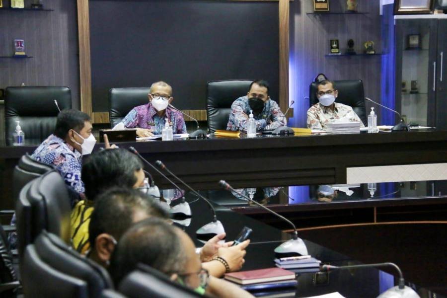 Medan, POL | Wali Kota Medan, Muhammad Bobby Afif Nasution,SE.,MM diwakili Wakil Wali Kota Medan, H. Aulia Rachman,SE memimpin rapat evaluasi pengadaan barang dan jasa Pemko Medan tahun 2021 di Ruang Rapat 1 Kantor Wali Kota Medan, Jumat (7/5/2021), diikuti pimpinan OPD Pemko Medan.