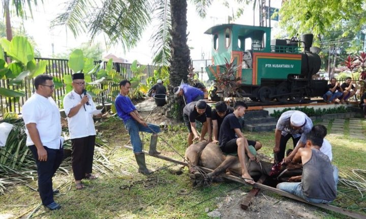 Termasuk 18 ekor sapi bantuan program Tanggung Jawab Sosial dan Lingkungan (TJSL) PTPN IV dan 1 ekor sapi sumbangan Bank Syariah Indonesia (BSI) Cabang Medan.