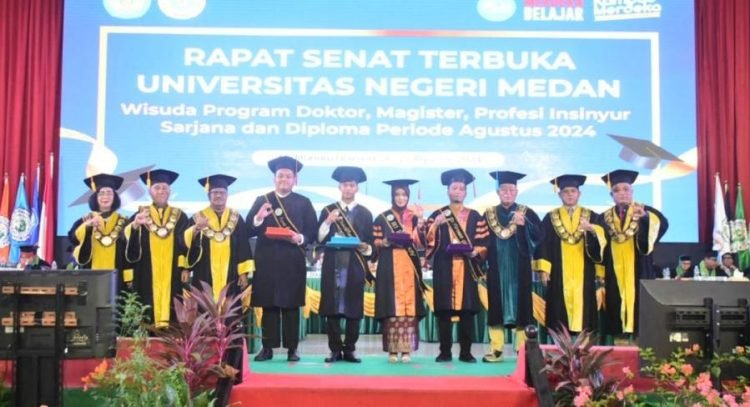 Medan, POL | Universitas Negeri Medan ( Unimed) mewisuda 1.680 lulusannya di Gedung Auditorium Unimed Jalan William Iskandar Medan, Rabu (21/8/2024).