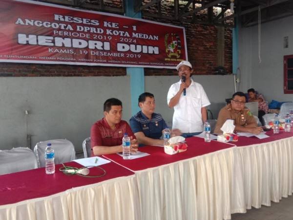 Keluhan tersebut disampaikan sejumlah warga kepada anggota DPRD Medan Hendri Duin dari Dapil V saat pelaksanaan Reses I Tahun 2019, Kamis (19/12/2019) di Jalan Setia Budi, Kelurahan Simpang Selayang, Kecamatan Medan Selayang.