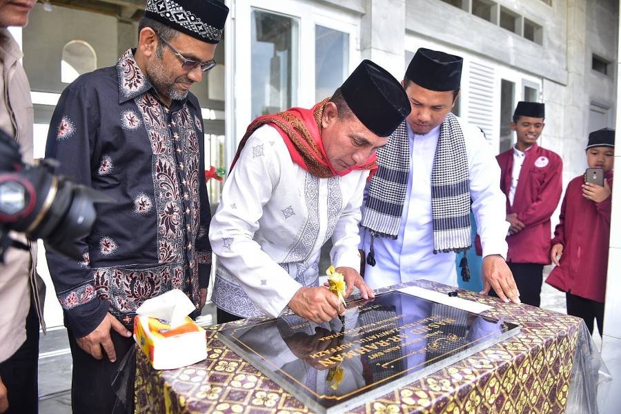 Hal itu disampaikan Gubernur Edy Rahmayadi saat menghadiri sekaligus meresmikan pemakaian Masjid Ar-Rahman Komplek Pesantren Zawiyatul Huffazh, di Kelurahan Tangkahan, Kecamatan Medan Labuhan, Kota Medan, Rabu (22/3/2023). Hadir di antaranya Ketua TP PKK Sumut Nawal Lubis, penceramah Ustaz Abdul Latif Khan, Pengasuh Pesantren Khairul Anwar Saragih, para pengurus pesantren, orang tua santri, serta pejabat setempat dan puluhan santri.