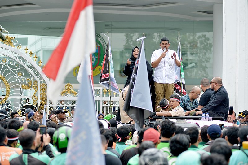 Kehadiran Bobby Nasution sebagai Gubernur Sumut disambut antusias ribuan pendemo. Bobby pun berdiri di atas mobil orator, kemudian menyapa dan menanyakan tuntutan para driver, yang mengenakan seragam kemitraan transportasi online.