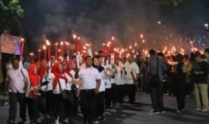 Medan, POL | Wali Kota Medan Drs H T Dzulmi Eldin S MSi MH diwakili Asisten Pemerintahan Setdako Medan Musaddad NasutIon mengikuti pawai obor yang digelar dalam rangka memperingati HUT Republik Indonesia ke-74 tahun 2019 di depan Kantor Gubsu Jalan Diponegoro, Medan, Jumat (16/8/2019) malam.