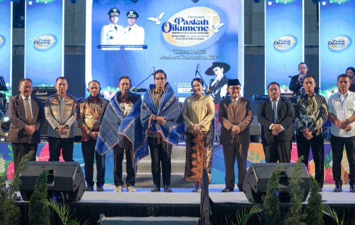 Medan, POL | Kemeriahan dan khidmat menyatu dalam perayaan Paskah Oikumene Pemko Medan tahun 2026 yang berlangsung di Pardede Hall, Rabu (29/4/2026) malam.