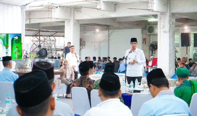 Medan, POL | Wali Kota Medan Rico Tri Putra Bayu Waas berbuka puasa bersama masyarakat dan jamaah Masjid Muwahiddin, Kecamatan Medan Selayang, Jumat (7/3/2025). Dalam kegiatan Safari Ramadan Pemko Medan itu, Rico Waas juga diminta menjadi imam Salat Magrib berjamaah di Masjid yang masih dalam tahap pembangunan itu.