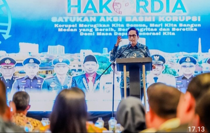 Penegasan tersebut disampaikannya dalam Peringatan Hari Anti Korupsi Sedunia Kota Medan sekaligus Gelar Pengawasan Daerah (Wasda) Kota Medan Tahun 2025 yang digelar di Hotel Aryaduta Medan, Kamis (18/12/2025).